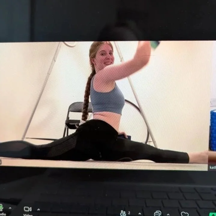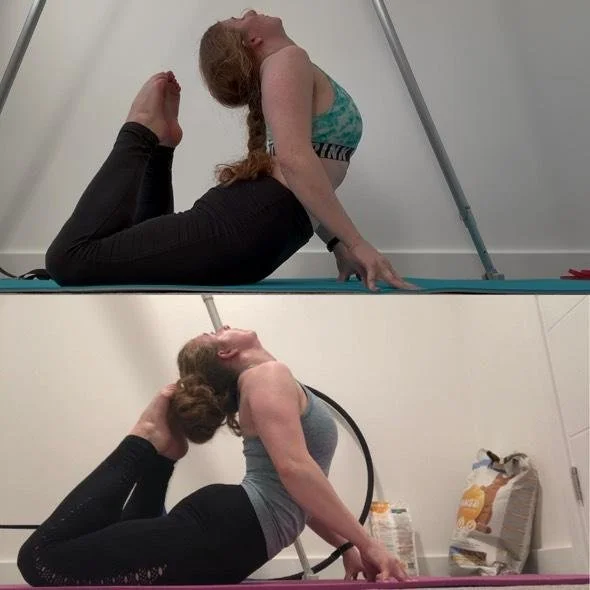 I started attending Kathryn’s flexibility classes (in person and then online) to improve my overall flexibility to help with shapes in the hoop. I then started one to one sessions to have a more targeted flexibility practice